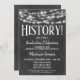 Une invitation amusante à la fête de remise des diplômes d'histoire sur tableau noir en noir et blanc avec des lumières scintillantes en haut.