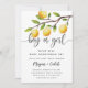 Carte d'invitation à la fête de révélation du sexe sur le thème des citrons mignons avec une illustration d'un citronnier avec les fruits citriques.