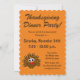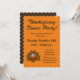 Cartes d'invitation personnalisées pour la fête de Thanksgiving. Invitations de vacances simples avec un dessin animé de dinde drôle et une typographie fantaisiste. Illustration d'un oiseau mignon avec des couleurs de fond automnales orange et marron. Conception amusante pour une réunion de famille, un rassemblement, une rencontre, etc.