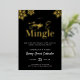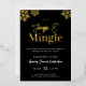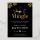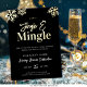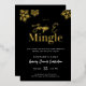 Une invitation élégante et moderne pour la fête de fin d'année de l'entreprise, avec un fond noir épuré et des accents de feuille d'or véritable ainsi qu'une typographie festive. Les lettres scintillantes « Jingle and Mingle » ajoutent une touche luxueuse, ce qui la rend parfaite pour une célébration d'entreprise sophistiquée tout en gardant l'esprit des fêtes lumineux et stylé.