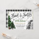Flanelle et Favoris ! Invitation à carreaux Buffalo noir et blanc pour fête de Noël des choses préférées. Modèle modifiable. Utilisez cette fête de Noël pour votre événement festif des fêtes !