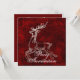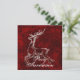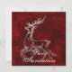 Un cerf renne heureux sur fond rouge avec une bordure complexe.