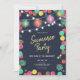 Une invitation à une fête d'été, lettrage à la main et points colorés et lampions autour