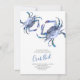 Cette élégante invitation à la fête sur le thème de la plage comprend les mots Crab Boil ensemble dans une typographie manuscrite stylisée avec détails de l'événement dans une police de serif gris charbon classique sur un arrière - plan blanc immaculé. Une réplique de ma peinture originale de crabe d'aquarelle dans les tons bleus orne l'avant. La carte d'invitation revient à une couleur bleu marine offerte. Un choix côtier chic mais élégant pour la plage décontractée de la Nouvelle-Angleterre, nautique ou été, 4 juillet et des parties de fiançailles. Pour voir toute ma suite de papeterie mariage visitez DoTellABelle sur Zazzle.