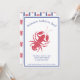 Invitation à thème du homard côtier rouge, blanc et bleu en été. Grand homard rouge sur le visage et homard et motif à rayures bleues sur le dos.