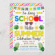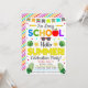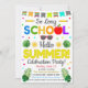 Fait une excellente invitation pour célébrer la fin de l'école et lancer la saison estivale. L'invitation fonctionne très bien pour les événements de fête scolaire, scolaire ou parrainés par le PTO/PTA ! Commencez l'été avec un message festif et coloré.