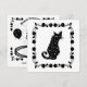 Avant : Chat Willow mystérieux aux yeux expressifs habillé en tenue céleste Arrière : Sorcière et chat Willow jouant avec une araignée qui se balance entourés de roses noires Personnalisable "Fête magique d'Halloween !" "Nom Adresse Date et Heure"