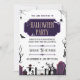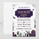 Vous êtes invité à passer un bon moment cet Halloween ! Cette invitation éffrayante et élégante vous permettra de découvrir la scène idéale d'un bash d'Halloween classique. La conception comporte une silhouette déplaisante de cimetière au crépuscule, avec un épouvantail, des pierres tombales, des arbres rongés et des chauves-souris en vol. Accentée d'araignées et d'élégantes typographies dans un décor violet et noir, cette invitation est parfaite pour un monstre en purée mémorable. Tous les détails de la fête sont entièrement personnalisables pour convoquer vos invités!