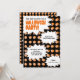 Une invitation partielle inspirée du pop art avec un arrière - plan rose avec un motif orange à demi-teintes. Personnalisez avec les détails de votre événement dans les 4 dessins d'action inspirés de la bande dessinée blanche. L'autre face dit "PARTI HALLOWEEN !" design intérieur blanc.