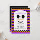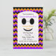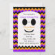 Cette invitation à la fête d'Halloween pour enfants présente un mignon fantôme blanc sur un arrière - plan chevron avec des rayures de chevron noir, orange et violet. La partie amusante de cette invitation est que vous pouvez mettre tous les détails de la fête pour votre fête d'Halloween directement dans le fantôme. Il y a même quelques rayures de chevrons à l'arrière de l'invitation. C'est une invitation vraiment mignonne et amusante pour une fête d'Halloween pour enfants. Copyright henishouseo