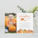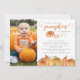 Attention à tous les célébrants d'anniversaire d'automne ! Il est temps de booster votre jeu de fête avec une invitation charmante qui fera chavirer vos invités. Nous vous présentons notre invitation d'anniversaire sur le thème des citrouilles à l'aquarelle, accompagnée de votre photo préférée et d'un délicieux assortiment de citrouilles. Et si cela ne suffit pas à vous mettre en joie, la phrase "Notre petite citrouille a UN an !" scellera certainement l'affaire. Cette invitation est la façon idéale de célébrer le 1er anniversaire de votre petit bout cet automne. Ne manquez pas d'ajouter une touche de magie automnale à votre journée spéciale.