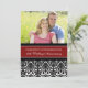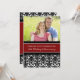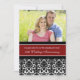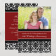 Carte d'invitation personnalisée pour une fête d'anniversaire de mariage de 20 ans en élégant motif damassé floral classique rouge cramoisi, noir et blanc, délicate et moderne. Personnalisable avec les détails de votre fête et votre propre photo.