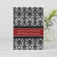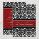 Carton d'invitation à la fête du 20e anniversaire de mariage dans un élégant motif damassé floral moderne rouge cramoisi, noir et blanc, délicat et contemporain. Personnalisable avec les détails de votre fête.