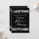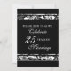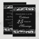 Carte d'invitation à la fête du 25e anniversaire de mariage élégante à motif floral noir et blanc, délicate et formelle. Personnalisable avec les détails de votre fête.