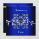 Élégante invitation à la fête du 25e anniversaire de mariage sur fond dégradé bleu, avec de jolies illustrations de décorations florales ton argenté, avec un saphir en forme de cœur, au milieu. Texte blanc au recto et texte bleu au verso entièrement personnalisables pour vos besoins événementiels. Jolies invitations adaptées à tous types de fêtes de mariage.