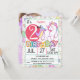 Célébrez le deuxième anniversaire de votre enfant avec cette mignonne licorne. Joyeux 2e anniversaire ! Personnalisez cette invitation avec le nom de votre enfant et les détails de votre fête.