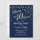 40th Birthday Party Invitation Design élégant avec fausse parties scintillant or et marine. Salut à 40 ans !