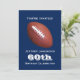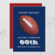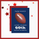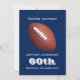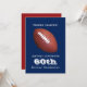 Un football sur un arrière - plan bleu foncé décore cette invitation unique et amusante 60e anniversaire de célébration. Le verso comporte des lettres blanches sur un arrière - plan rouge. Vous pouvez facilement modifier le texte pour le nom, l'âge, l'événement, la date, etc. Les joueurs de football, les fans et les entraîneurs adoreront ! Tous droits réservés © 2015 Alan & Marcia Socolik.