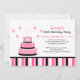 Notre invitation de soirée gâteau rose et noir 50th Birthday Cake Party propose un joli gâteau d'anniversaire rose et noir à 3 étages, avec pois, rayures et étoiles.