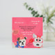 Une invitation à la fête de la Saint Valentin, mignonne et si amusante, avec de nombreux chiens mignons en casquettes, écharpes et manteaux avec des arcs, ballons, coeurs et fleurs avec des zones que vous pouvez facilement customiser avec les détails de votre fête de la Saint Valentin!