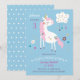 Cette douce invitation à la fête d'anniversaire présente un joli personnage Unicorne et d'autres éléments fantaisistes comme un nuage, des fleurs et des étoiles. Le design festif est idéal pour une soirée à thème Unicorn. Cette carte branchée est parfaite pour un enfant jeune et heureux.