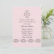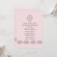 Une élégante invitation à la célébration religieuse d'une fille avec un parchemin vintage et une croix de coordination sur un arrière - plan rose pâle. Le panneau arrière est parfait pour les informations de réception.La carte est facile à customiser avec votre libellé, police, couleur de police et choix de six types de papier.