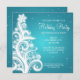 Elégante carte d'invitation pour les fêtes de Noël avec tourbillonnant Arbre de Noël Turquoise . Impressionnez vos amis avec ce design d'invitation moderne. Entièrement personnalisable !