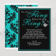 Invitation à la Bachelorette Party "Final Fling Before the Ring" en bleu et noir avec texte personnalisable