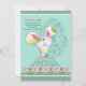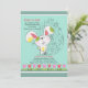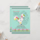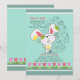 Un mignon lapin de Pâques se déplace dans cette adorable invitation saisonnière. Le arrière - plan turquoise est orné d'un oeuf de Pâques fleuri et d'une bordure de tulipes rouges et roses. (FP)