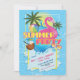 Invitation à la fête de la piscine d'été avec flotteur de piscine flamand et ballon de plage.