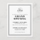 Une invitation élégante et minimaliste conçue pour l'inauguration d'une entreprise, le lancement d'un produit ou un événement de marque. La mise en page présente un fond blanc épuré avec une typographie sérif classique noire, combinant des styles de police simples et épais pour un look professionnel et intemporel. Un simple cadre à double ligne ajoute une touche d'élégance sans surcharger le design.