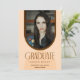 Annonce de remise de diplôme en architecture moderne et invitation à la journée portes ouvertes au verso. Si désiré, le verso de la carte peut contenir du texte supplémentaire pour plus d'informations sur l'éducation ou la fête de journée portes ouvertes