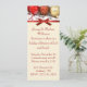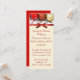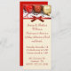 Invitation festive de fête, faite sur un long stock de carte maigre, avec une photo de boules de Noël rouge et or en haut des invitations. Un ruban rouge satiné et un arc comme une bordure entre le haut et la zone de texte couleur crème. Customisez le texte en fonction de vos besoins.
