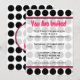 Une invitation présentant un fond à pois noir et blanc avec une garniture rose chaud. Le côté opposé présente un cadre circulaire rose assorti avec le texte "Vous êtes invité". Personnalisez le texte avec les détails de votre occasion.