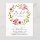 Élégante invitation à la douche nuptiale économique avec une couronne d'aquarelle de fleurs roses et coralliennes et écriture et typographie élégante.