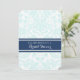 Invitations de douches nuptiales dans l'élégante couleur bleu marine pastel turquoise, bleu marine foncé et blanc classique floral damask vintage motif, chic et féminin, personnalisable avec vos détails de douche. Également disponible en cartes de remerciement et invitations pour la fête de mariage.