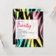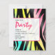 Une invitation générique à fêter tout usage avec un arrière - plan d'impression zèbre en néon à l'avant et à l'arrière. Personnalisez le texte rose et noir sur le devant avec les détails de votre occasion.