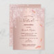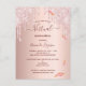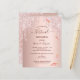 Une Quinceañera virtuelle féminine et féminine, invitation à la fête du 15ème anniversaire. Sur le devant : Un faux métallique en or rose, arrière - plan à l'aspect feuille. Décoré de fleurs roses d'or et de rose, de feuilles botaniques d'automne et de gouttes de parties scintillant. Personnalisez et ajoutez un nom et des détails de la fête Zoom/Skype. Le nom et le texte : Virtuel sont écrits avec un script de style manuscrit, des lettres roses foncées de couleur or. Retour : arrière - plan rose d'or et gouttes de parties scintillant. Conseil : Si vous ne voulez pas qu'il ressemble à une carte postale, cliquez sur customiser, allez à l'arrière et retirez le séparateur et le timbre postal.