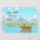 Pour les amateurs de pêche, une invitation à l'anniversaire qu'il va aimer ! La carte présente un homme avec un poteau de pêche dans un bateau en bois et un arrière - plan de montagne.