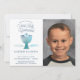 Cette invitation photo de la Première Communion moderne et élégante présente un chalice, du blé et un hôte - symboles de l'Eucharistie. Les mots "Première Sainte Communion" sont écrits dans une police bleue élégante. Le texte, la photo et la couleur arrière - plan (au dos) peuvent être customisés à votre goût. Un moyen parfait pour les invités invitations à l'occasion religieuse spéciale de votre fils.