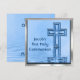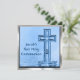 Le design artistique original aux couleurs bleues, illustré dit : La "Première Communion sainte de Jacob" sur le devant avec une croix avec l'étoile éclatée se reflète dans les vagues d'eau paisibles qui s'écoulent en dessous. Modifiez facilement le nom et ajoutez votre texte personnalisé à l'arrière. Souvenez-vous de ce jour saint spécial avec ces invitations personnalisés et des annonces pour votre famille et vos amis. Voir des autocollants et des boutons similaires de la Première communion, des épingles, des magnets, des t-shirts, des timbres-poste et des classeurs au magasin MVDesigns. Aussi idéal pour les confirmations, les baptêmes et les baptêmes, et les mariages !