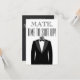 Mate Time to Suit avec tuxedo sur le devant. Personnalisé avec le nom du marié, le message, le nom du marié et une date donnée ou la date mariage.