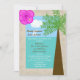 Vous êtes-vous mariés dans un cadre tropical et souhaitez-vous célébrer avec une réception après-mariage sur le thème tropical ou plage ? Cette invitation de réception après-mariage pourrait être l'invitation idéale pour vous. Avec un hibiscus en haut à droite dans un rose vif, le design est bordé de ce qui ressemble à du sable avec un palmier à droite. Le nom de la mariée et du marié apparaît dans le ciel et les détails de la réception après-mariage apparaissent dans l'océan. Une excellente façon d'inviter vos invités à une réception après-mariage après un mariage à destination. Copyright henishouseofpaper