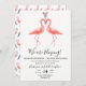 Nous fuyons ! Annonce de fuite avec invitation à la réception avec un couple de flamants roses. Trouvez la papeterie assortie dans notre boutique.