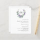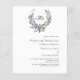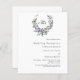 Un arrière - plan blanc décoré d'une fleur de lavande et d'une couronne d'eucalyptus, crête. Personnalisez et votre monogramme, noms et détails. 1 feuille = 1 invite imprimé bord à bord.