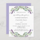 Un arrière - plan blanc décoré de fleurs de lavande et de verdure d'eucalyptus. Personnalisez et vos noms et détails. Retour : lavande, arrière - plan violet. 1 feuille = 1 invite imprimé bord à bord.
