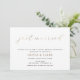 L'annonce de mariage Just Married fait également office d'invitation à la réception de mariage. L'invitation de réception recto-verso présente "Just Married" en lettrage de feuille d'or faux avec un texte annonçant le mariage des jeunes mariés et invitant les invités à une réception de mariage décontractée. Personnalisez avec votre photo horizontale au verso.