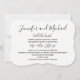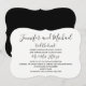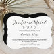 Cette invitation amusante pour la réception de mariage après la cérémonie présente une police noire joyeuse pour vos noms suivis de "les noeuds sont liés" sur une invitation à parenthèses blanche. Vous pouvez personnaliser l'endroit où vous vous êtes mariés, suivi de votre M. et Mme, puis tous les détails de votre réception après le mariage ! Le dos de l'invitation est noir pour une invitation simple mais élégante après le mariage. Copyright henishouseofpaper