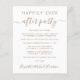 Un hébergement économique ou un faire-part mariage privé, une réception de mariage ou une invitation à célébrer une fête. Le devant présente "Happily Ever After Party" en simple typographie or et un script d'or chic avec des swashes. Personnalisez votre faire-part et votre invitation et ajoutez vos noms dans un script en or ressemblant à une signature. Le verso comporte vos prénoms et votre date de mariage.