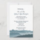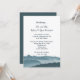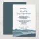 Cartes d'invitation à la réception des montagnes brumeuses en couleurs bleu foncé. Une bordure de chaîne de montagnes au bas de cartes blanches et un texte de script personnalisé sont faciles à personnaliser. Annoncez un mariage et mettez les noms des jeunes mariés en haut sous le texte «introduisant». Utilisez le paragraphe d'invitation pour inclure les informations de la cérémonie et inviter les invités à la célébration de la réception. Le verso est d'un bleu-vert forêt sombre.
